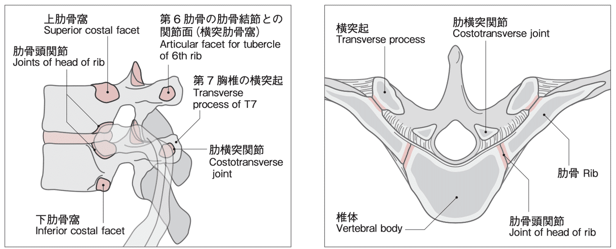 図4 肋椎関節(肋骨頭関節と肋横突関節)