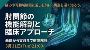 講義内容: ・肘関節の臨床評価 ・肘関節の徒手アプローチ ※講義テーマは一部変更となる場合がございます。 達成目標: ・肘関節の機能解剖学を1から学ぶ ・肘関節の評価ができるようになる ・肘関節のアプローチができるようになる |