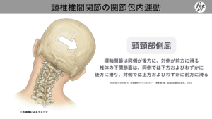 上位頸椎の反対側への側屈や回旋は、翼状靱帯の牽引⁹⁾によって引き起こされるとされています。